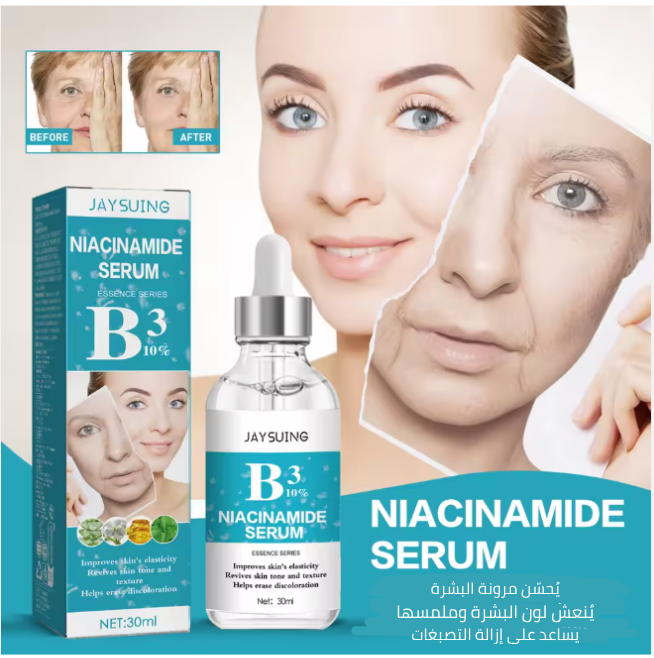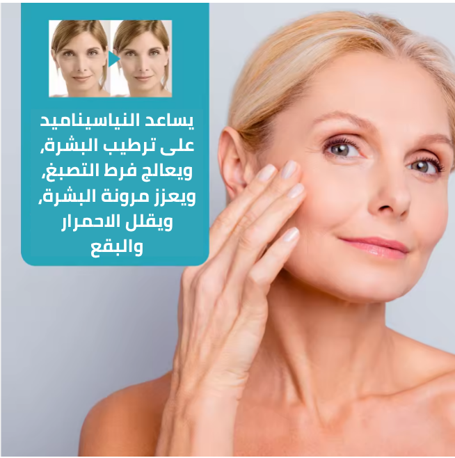 ما تخليش التجاعيد تنقص من جمالك، رجّعي النضارة والثقة فراسك مع سيروم النياسيناميد اللي كيعطي لبشرتك شباب جديد ولمسة ديال الأناقة والأنوثة.